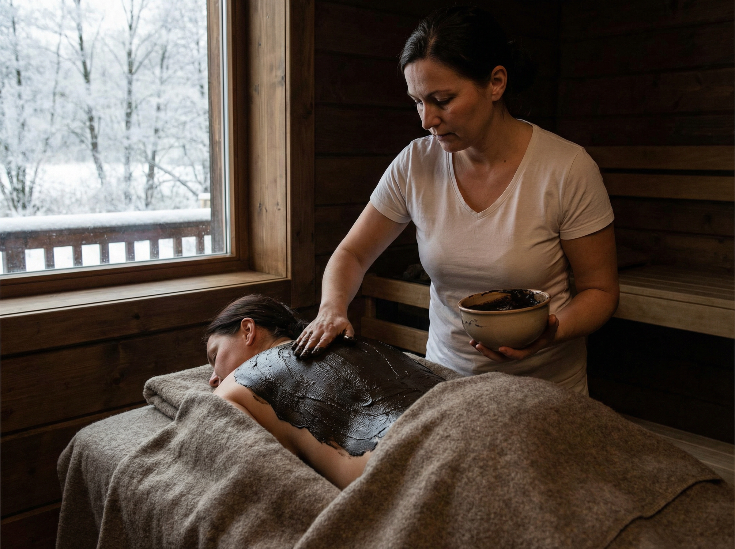 Po koupeli následuje suchý zábal, kdy tělo v klidu dopotí a vstřebává účinky procedury. Právě tento moment relaxace je pro psychiku v zimním období neocenitelný.